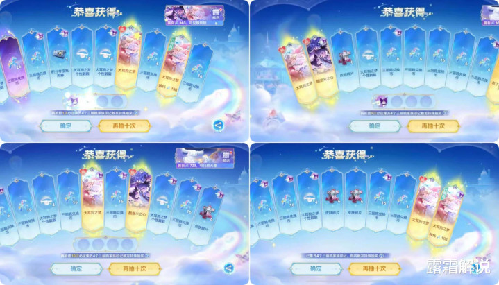 上图就是社交平台上面,众多欧皇晒出的中奖截图,特别是活动刚开始的时候,不知道是玩家的感觉还是中奖概率确实有这么高,反正社交平台还有朋友圈随处可见的就是皮肤中奖截图,而且10连抽一次出2个金色的奖励的概率也特别大。