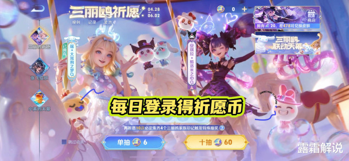当然,在近期最重要的就是五五开黑节上架的祈愿活动。这次王者的祈愿活动是王者荣耀和三丽鸥联动推出的皮肤,皮肤归属给到了瑶妹以及安琪拉。