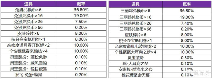 难道这次概率真的有调整吗?其实对比官方发布的张飞以及这次三丽鸥联动皮肤中奖概率图我们就可以看到这次的中奖概率并没有提升,估计只是这次喜欢秀的玩家居多,被你们看到了。