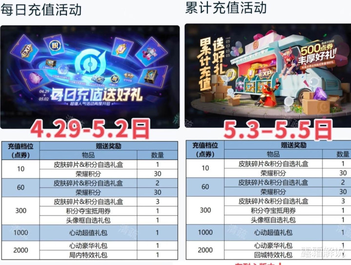 所以非酋玩家如果想要节约,也是有方法的。需要注意官方推出的充值返利活动,在4月29日~5月2日期间充值点券可以获得很多奖励。当然在5月3日~5月5日期间累计充值也可以获得相关奖励,这样加在一起就更加的划算了。